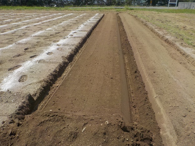 うだるような暑さの中、時々へとへとになったような表情を浮かべながら、職員指導の下、3畝を無事作り終わりました。