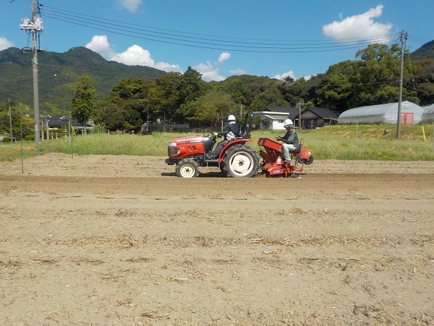 キャベツの耕うん・畝立・施肥を同時にしました!