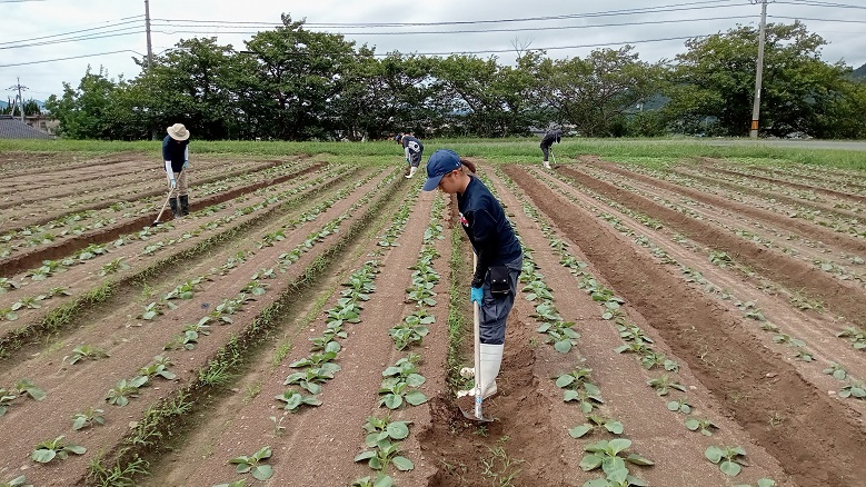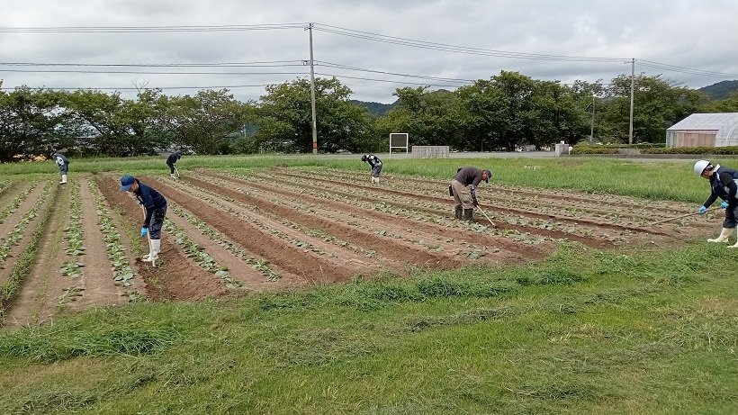 9月12日(金)、園芸学科野菜経営コースでは、1年生5名と研修生1名が、キャベツの中耕を行いました。