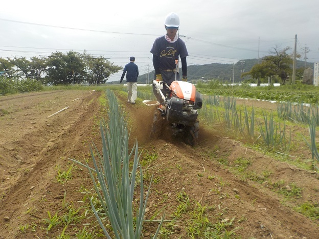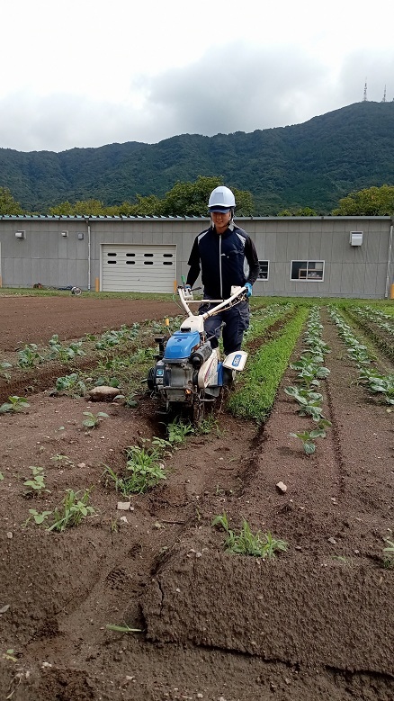 9月24日(水)、園芸学科野菜経営コースでは、1年生1名が管理機で白ネギの最初の土寄せを行いました。