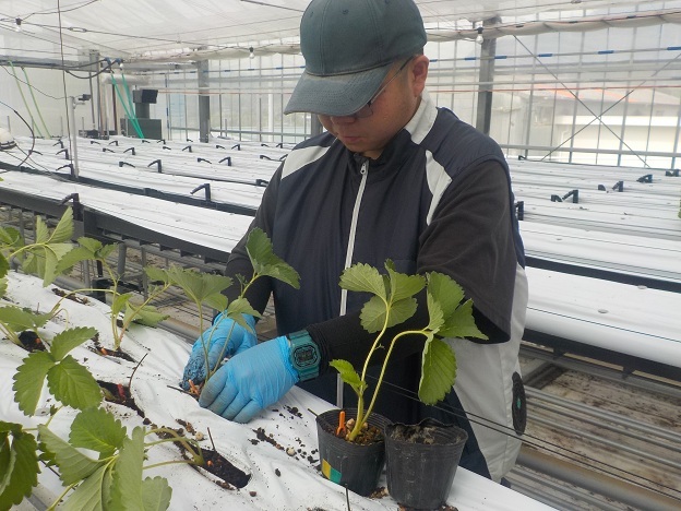 9月24日(水)、園芸学科野菜経営コースでは、1年生1名が経営プロジェクトのイチゴを植えました。