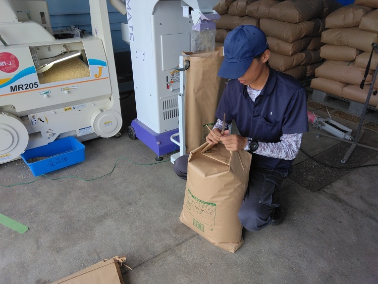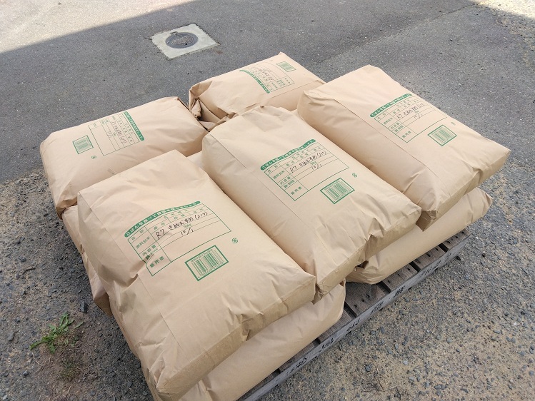土地利用学科の収穫も中盤に差し掛かり、今は「きぬむすめ」の収穫と乾燥・調製(籾殻を取り除き、ふるいで充実不良の玄米を取り除くこと)・袋詰めを行っています。播種してから、田植え、追肥、防除、そして暑い中の草刈りや日々の水管理等など・・・その集大成のお米です。