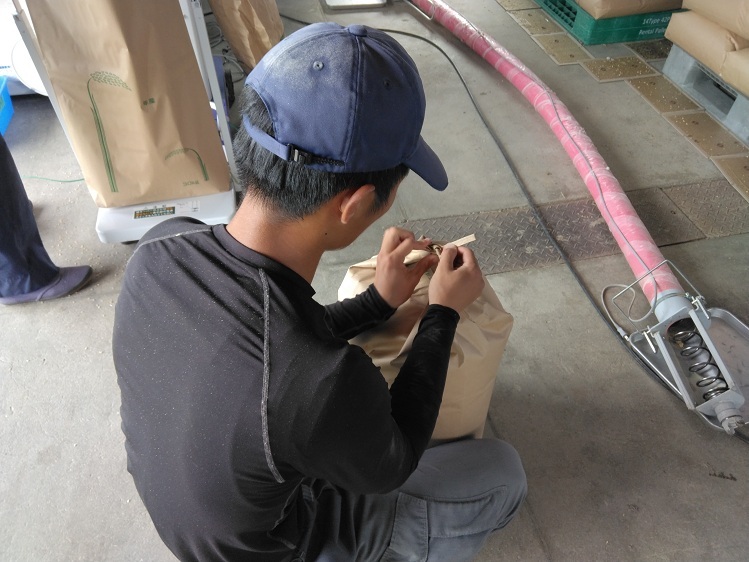 学生達は、玄米が30キロ詰まった袋の口を丁寧に、見た目もキレイに結び、パレットの上にどんどん積み上げていました。今年は豊作のようですね。土地利用学科が育てた新米が、農大の食堂で食べられる日も間近です!