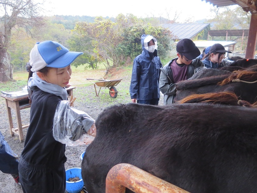 そこで12月5日(金)、田布施農工高等学校、柳井農林水産事務所畜産部と連携し、山口県農業共済組合のご協力を得て、学修の一環として本校の全共候補牛(胎児)の雌雄を確認しました。