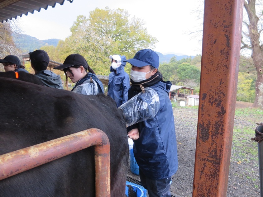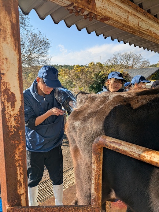 令和9年度に「和牛のオリンピック」と呼ばれる全国和牛能力共進会が予定されており、本校も特別区への出品に向けて、候補牛を確保するための人工授精を行い、出産を待つ状況です。