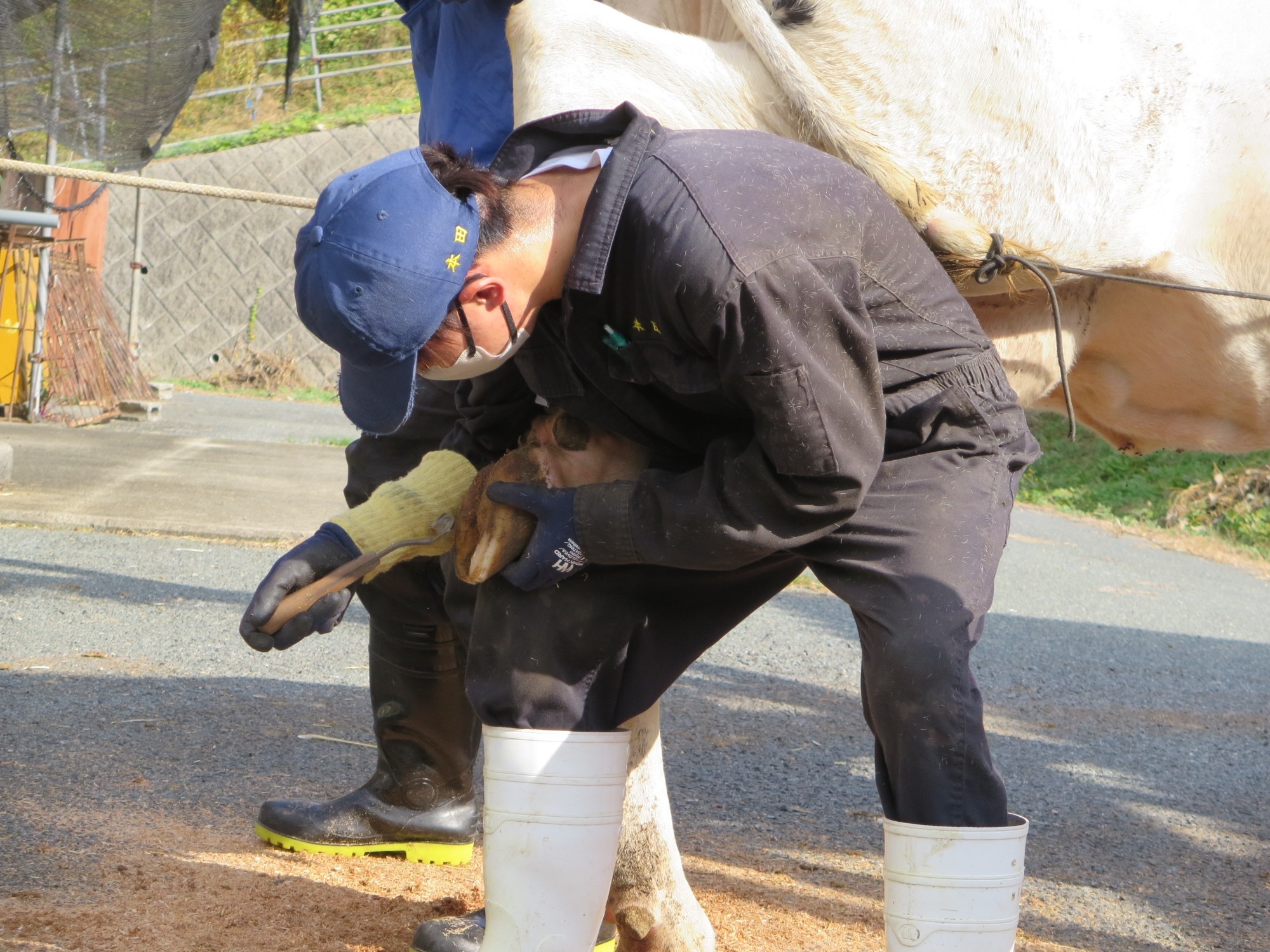 牛の爪(蹄)は人間と同じように伸びます。伸びすぎると立ち方や歩き方が悪くなり、怪我や事故の原因となるため、定期的に削蹄する必要があります。