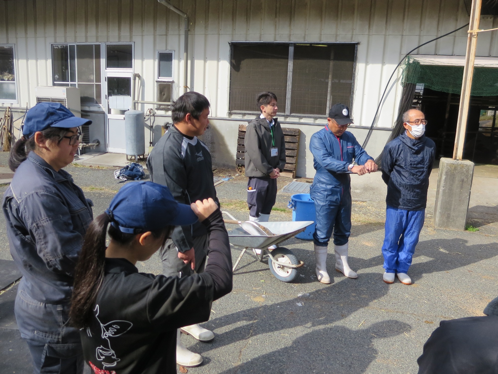 作業中の雑談で1年生が就職など将来について思いを話し、社会人研修生は就職活動のアドバイスをしていました。こうした関係が築けるのも、農業大学校の特徴の一つです。