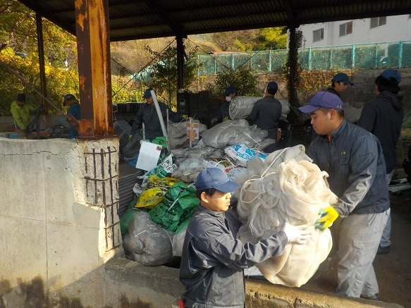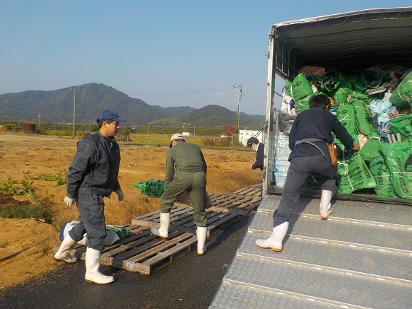 年に1回の大仕事です。11月18日から25日にかけて、農業大学校では、1、2年生と研修生が一緒になって、使用済み農業用プラスチック(廃プラ)をトラックに積み込みました。