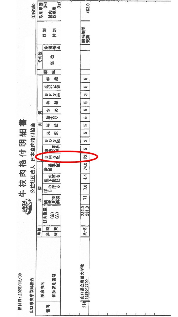 山口農大初!枝肉で霜降り最高ランクが出ました!