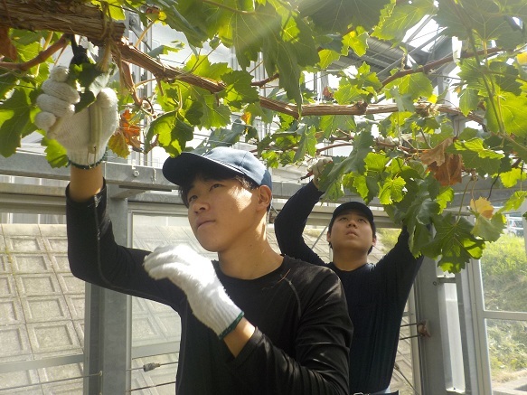 園芸学科果樹経営コースでは、ブドウを約20品種栽培しています。産地の動向や農大での栽培のしやすさを考えて、新しい品種を導入しています。