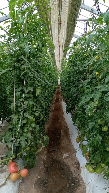 「園芸学科野菜経営コースで、今いちばん管理が行き届いている」という噂を聞いて、鉄骨温室に行きました。1年生が、大玉トマトの収穫をしていました。