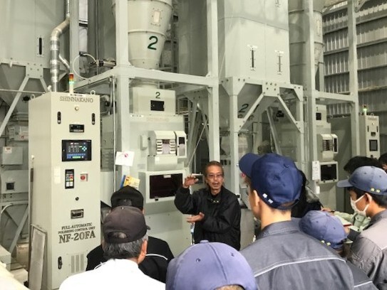 土地利用学科では、毎年山口県オリジナル酒米「西都の雫」を生産、出荷しています。でも、出荷してお終い、ではもったいない。お酒造りに関わる方々の声を聞き、自分達の栽培管理を改善していくことこそ、農大でお米作りを学ぶ意義があるってもんです。ということで、12月2日(火)、土地利用学科は学生と職員全員で「萩酒米みがき協同組合(搗精工場)」と周南市の酒蔵「(株)はつもみぢ」に視察に行きました。