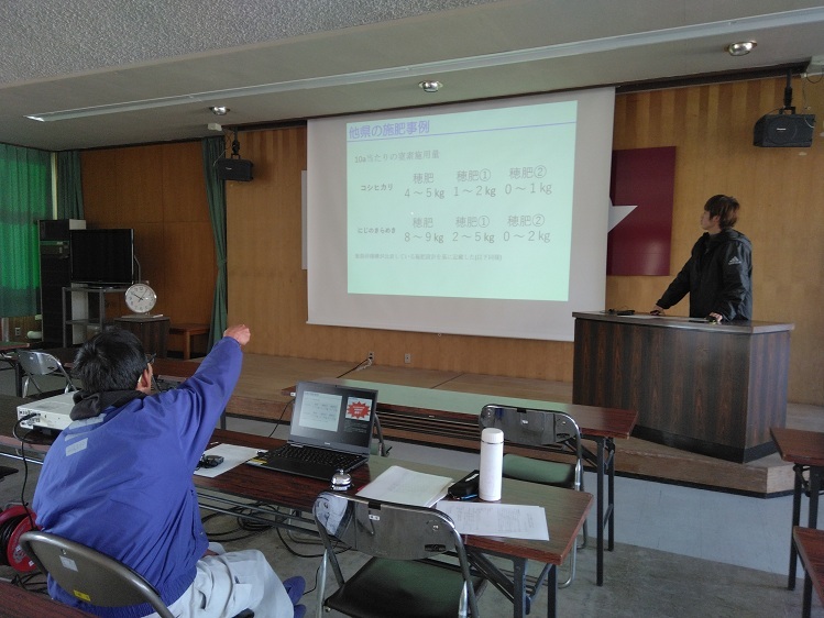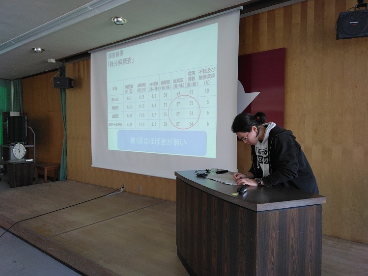 今回は、「キュウリの半促成栽培における日射比例潅水が生育、収量に及ぼす影響」について、担当の2年生が発表しました。