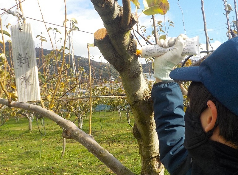 本格的なせん定は、落葉後の12月からスタートし、終了時期は2月中旬頃を予定しています。来年も、大きく甘いナシがたくさん収穫できますように!