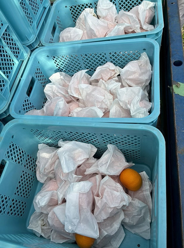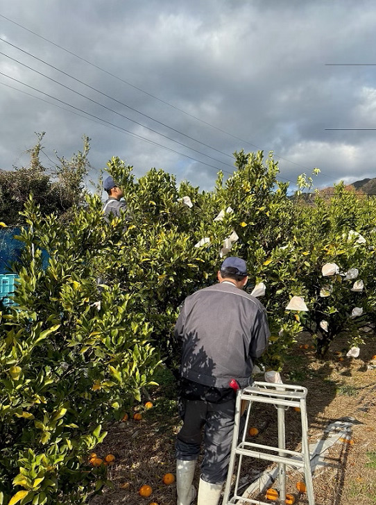 かんきつは、寒波の影響を受け果実が凍結すると、果実の水分が失われてパサパサになる「す上がり」という品質低下を起こす恐れがあります。今回、最低気温-4℃の予報が出たため、す上りが起きないよう寒波の前に収穫しました。急な作業にはなりましたが、「せとみ」が大好きな学生は、待ちに待った収穫に喜びを感じていました。