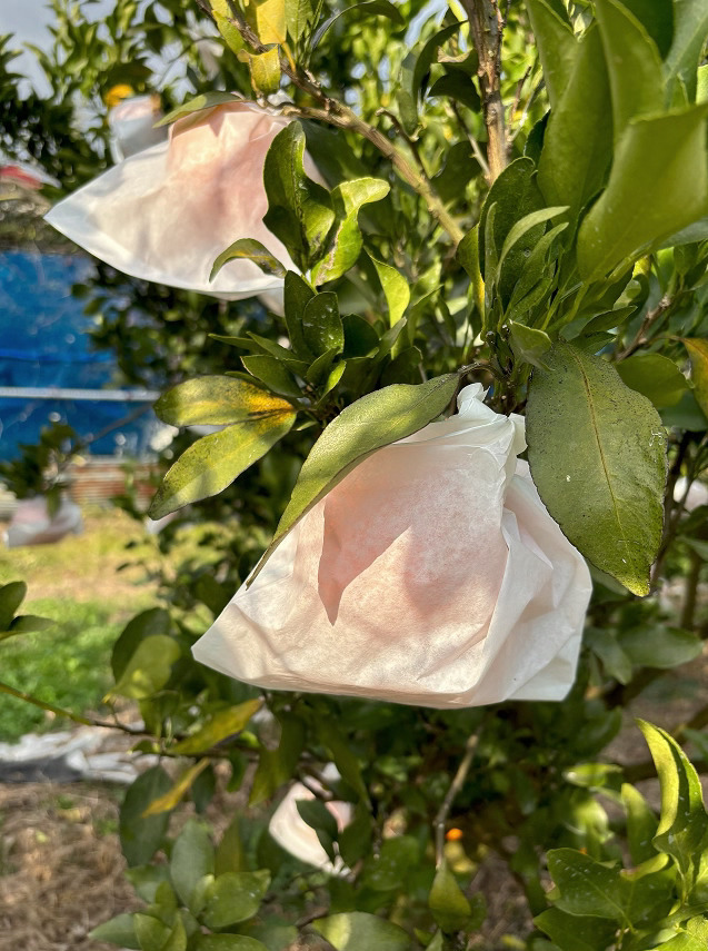 園芸学科果樹経営コースでは、1年生2名がかんきつの山口県オリジナル品種「せとみ」を収穫しました。